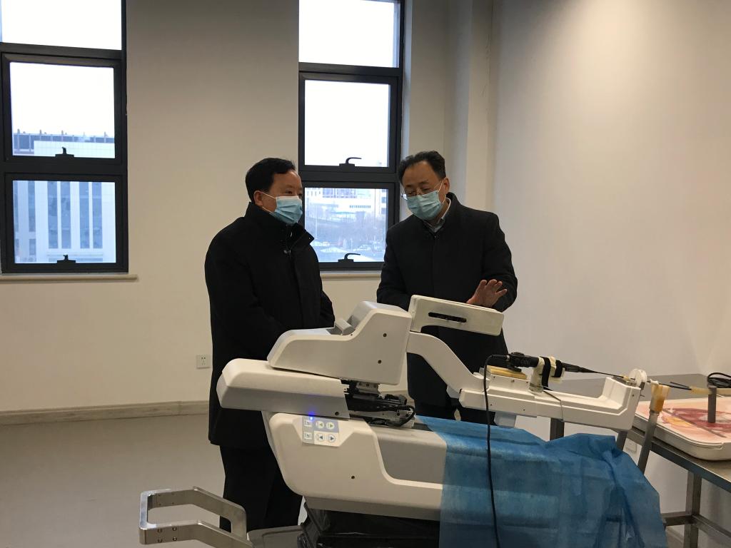 调研中,王树新详细介绍了研究院在医疗机器人和智能系统方面开展的创新探索与科研成果,该院研发的“腹腔内窥手术设备”机器人系统2021年10月正式获得国家药监局批准注册上市,真正实现了从实验室到产业化应用的跨越。