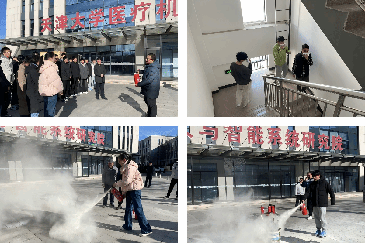 本次活动分为消防安全培训演练及趣味互动体验两部分,特邀天津大学保卫处李欢老师进行现场授课与指导。李老师结合近年来全国高校发生的典型火灾事故案例,通过详实的图文视频资料,深入浅出地剖析了火灾的诱因、常见的火灾种类、火灾发展过程以及给生命财产安全带来的巨大危害,针对办公室、实验室、学生公寓等重点区域,详细讲解了不同场景下的日常消防安全注意事项及初期火灾的扑救方法、消防器材的正确操作流程及火灾现场疏散逃生技巧等基础常识。理论培训结束后,在李老师的专业指导下,全员高效有序完成应急疏散演练并在前广场依次进行干粉灭火器实操实训。