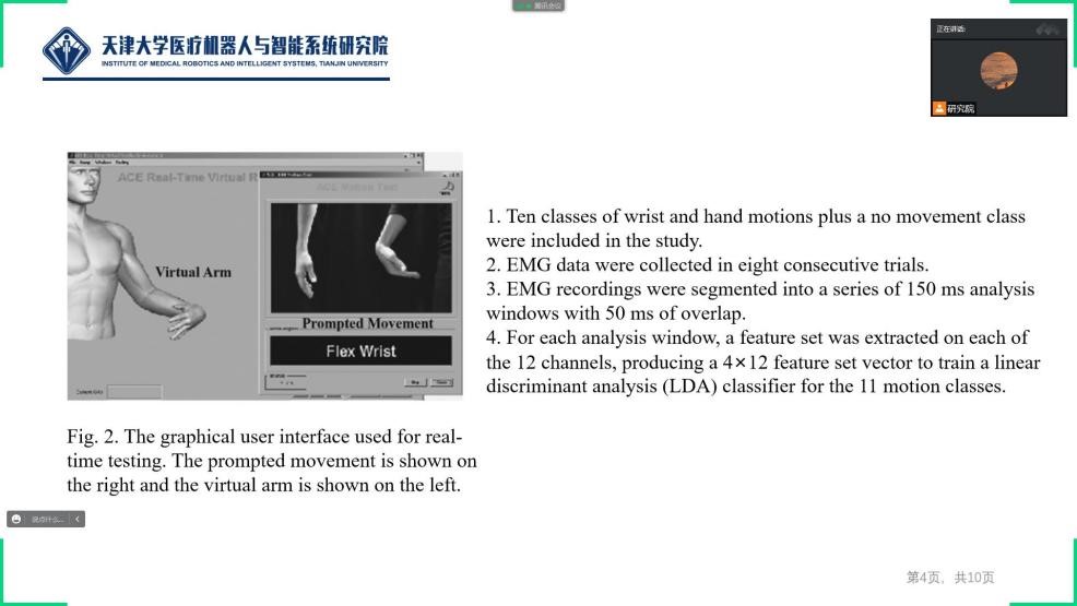 2021级硕士生丁忠义进行题为《Quantifying Pattern Recognition—Based Myoelectric Control of Multifunctional Transradial Prostheses》的报告分享: