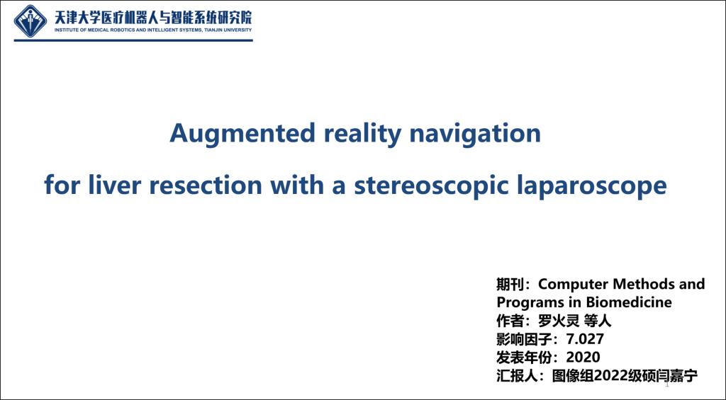 首先,由闫嘉宁进行题为《Augmented reality navigation for liver resection with a stereoscopic laparoscope》的报告分享:
