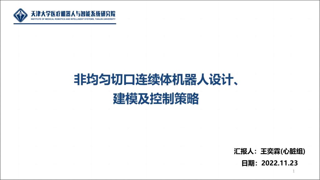 最后,由王奕霖进行题为《非均匀切口连续体机器人设计、建模及控制策略》的报告分享: