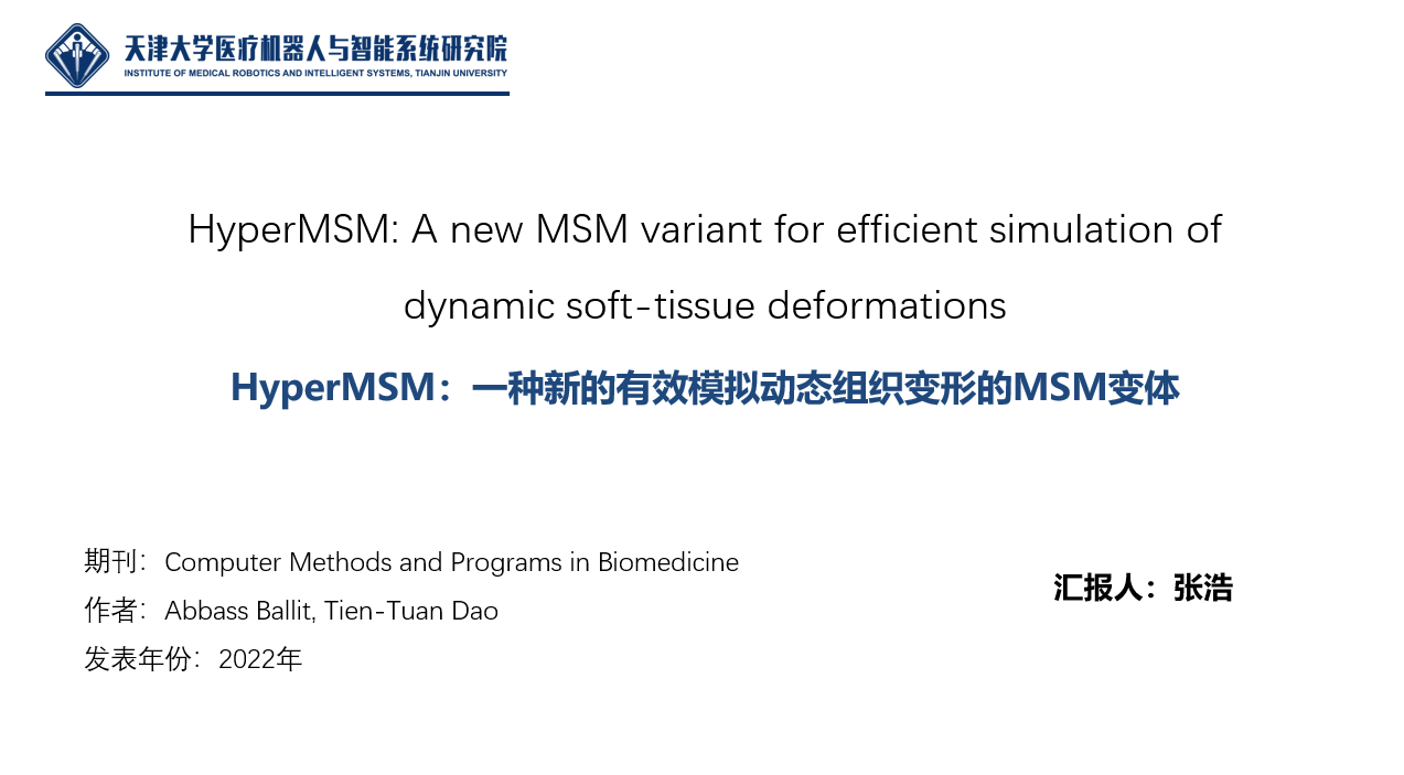 首先,由张浩进行题为《HyperMSM: A new MSM variant for efficient simulation of dynamic soft-tissue deformations》的报告分享: