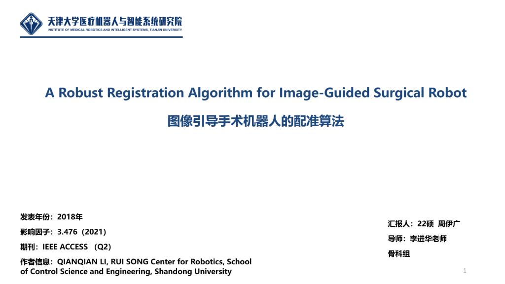 接下来,周伊广同学进行题为《A Robust Registration Algorithm for Image-Guided Surgical Robot》的报告分享: