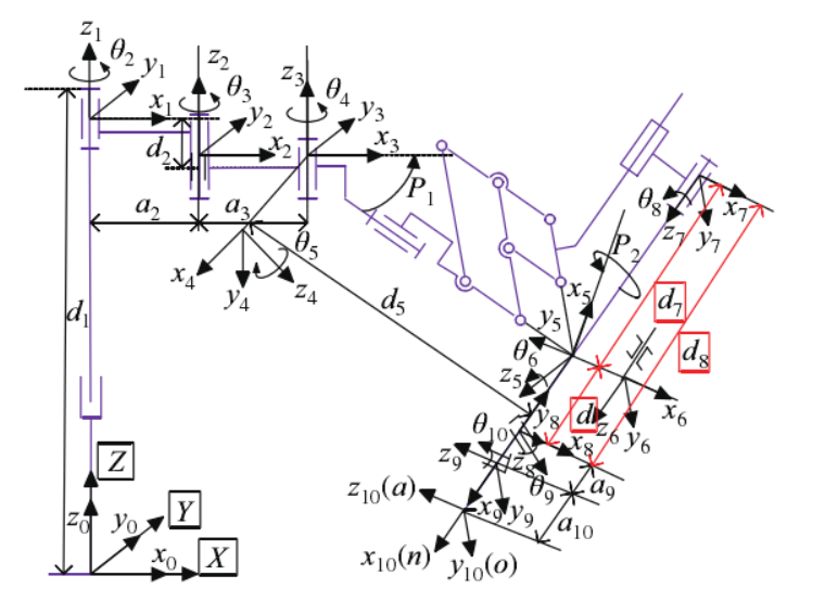 机器人的逆向运动学问题是其轨迹规划和运动控制的基础。逆运动学求解的快速性和准确性是影响机器人控制性能的一个主要因素。所以解析解在机器人控制中具有不可替代的优势。如何得到机器人的解析解显得尤为重要。当机器人的关节配置满足 Pieper 准则的时候其逆运动学方程具有解析解,当不满 Pieper 准则的时候无法分离出独立的关节变量,没有通用的解析解求解方法,所以很难求得其解析解。