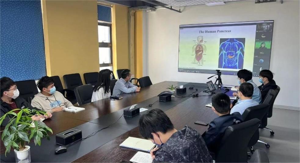 讲座结束后,线上线下的老师与同学纷纷参加互动讨论,基于胰腺癌免疫治疗方法,结合医疗机器人以及研究院在结肠癌诊疗的现有研究等方面进行了深入研讨。此次会议,为同学们提供了宝贵的学习与交流机会,使同学们了解了生物化学方面的很多知识,实现了多学科交叉融合,开拓研究新方向。