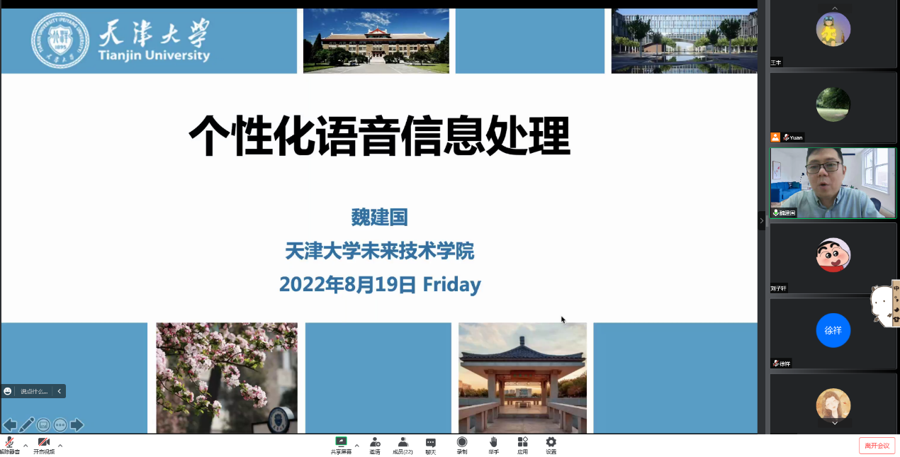 本期讲座由青海民族大学校长助理兼智能与计算学部执行主任,天津大学智能与计算学部副主任,博士生导师,魏建国老师进行题为《个性化语音信息处理》的报告分享: