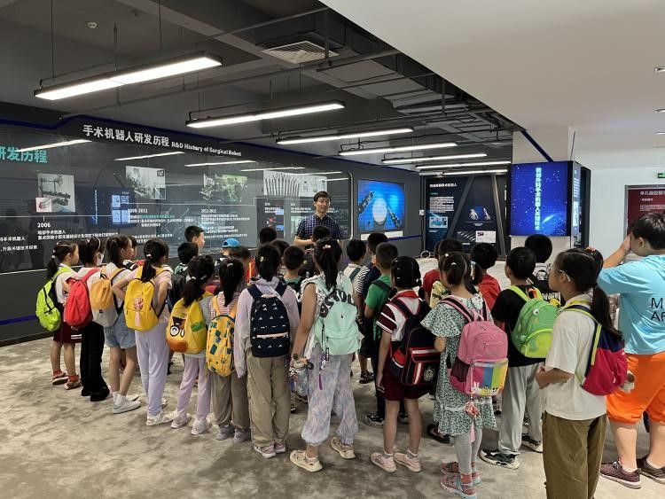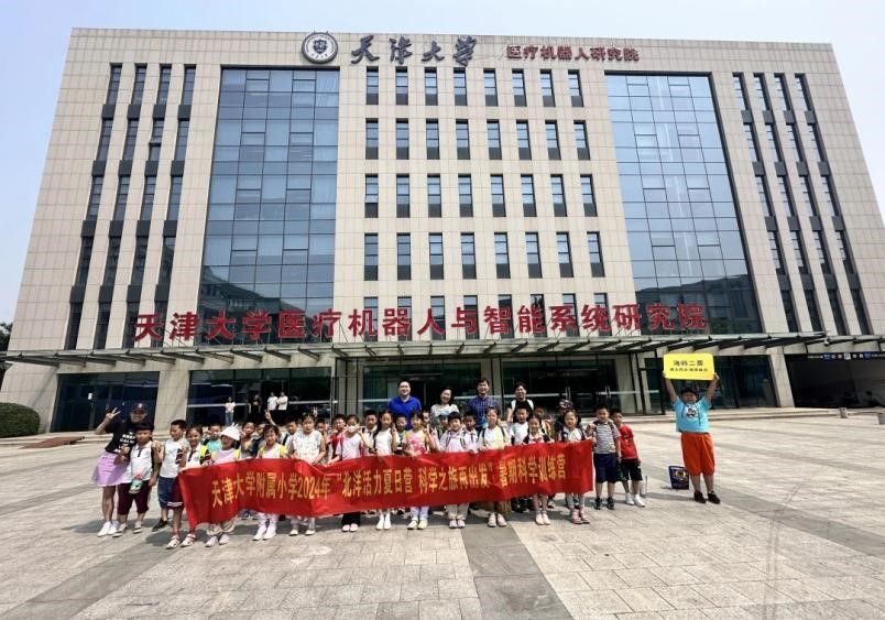 7月10日,天大附小30余名师生来到天津大学医疗机器人与智能系统研究院(以下简称研究院)开展科学实践活动,学生们在李建民教授的带领下参观了研究院科技展厅并进行了一系列科技体验。