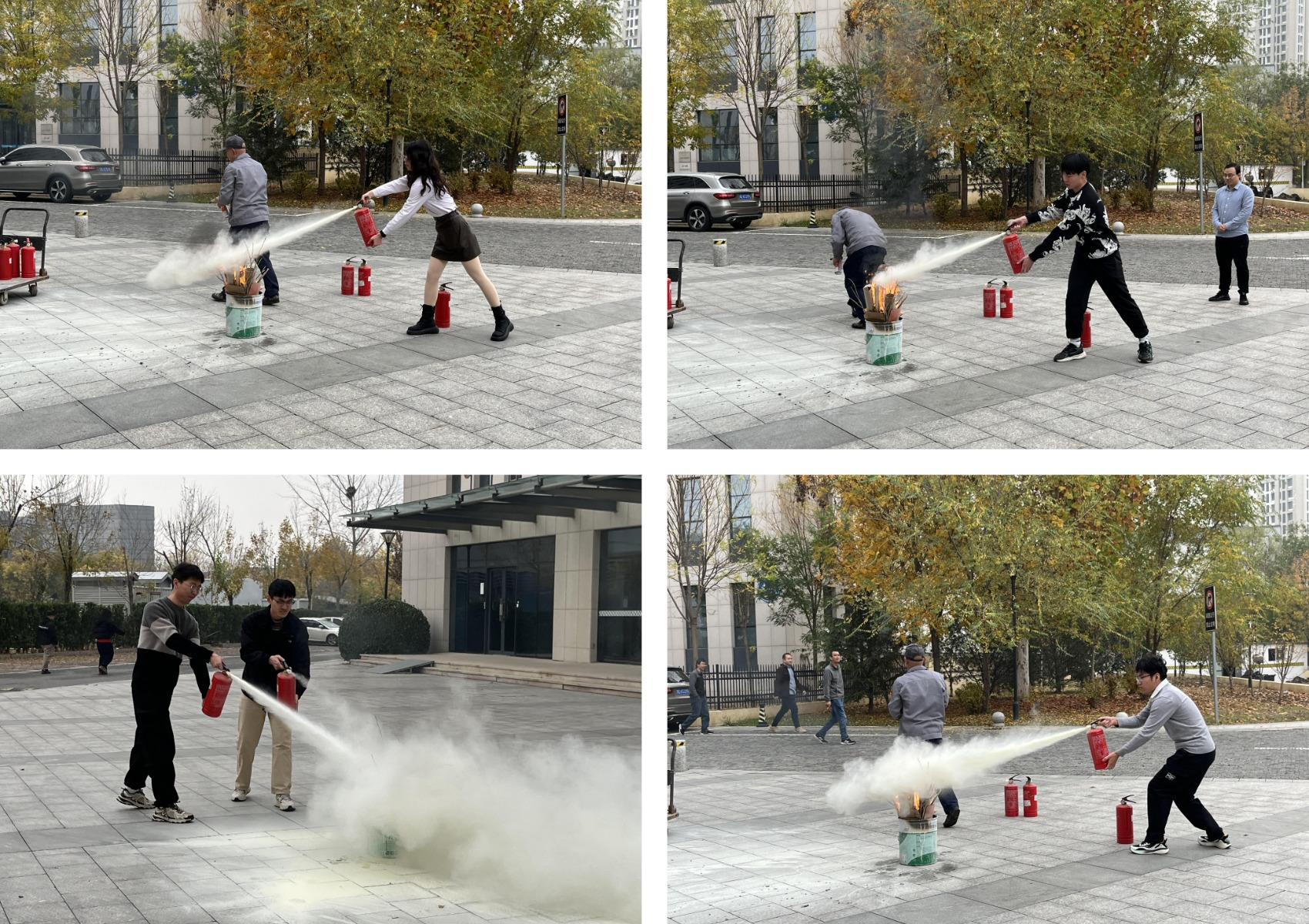 定点灭火演练环节中,弓科长现场指导参训人员进行消防器材使用的实操练习。通过亲身体验,大家熟练掌握了干粉灭火器“一提、二拔、三握、四压”的操作要领,确保在发生火灾的紧急情况下能够迅速、准确的采取行动。
