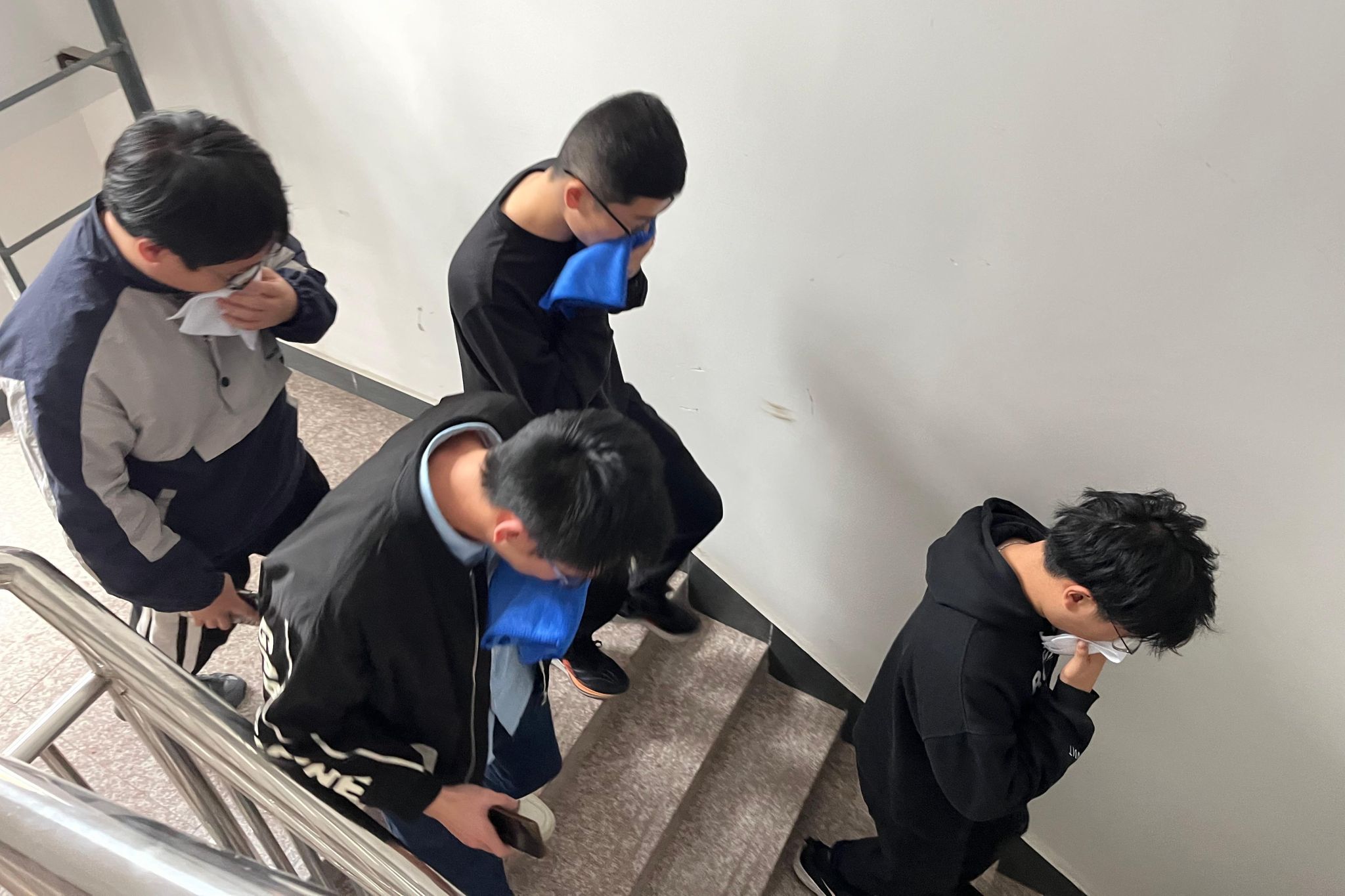 理论培训结束后,研究院组织开展了应急疏散演练,师生职工按照预定的逃生路线,捂住口鼻,弯腰前行,迅速而有序地撤离到楼前广场的安全区域,避免了因吸入有毒烟雾和拥挤踩踏而造成的伤害。