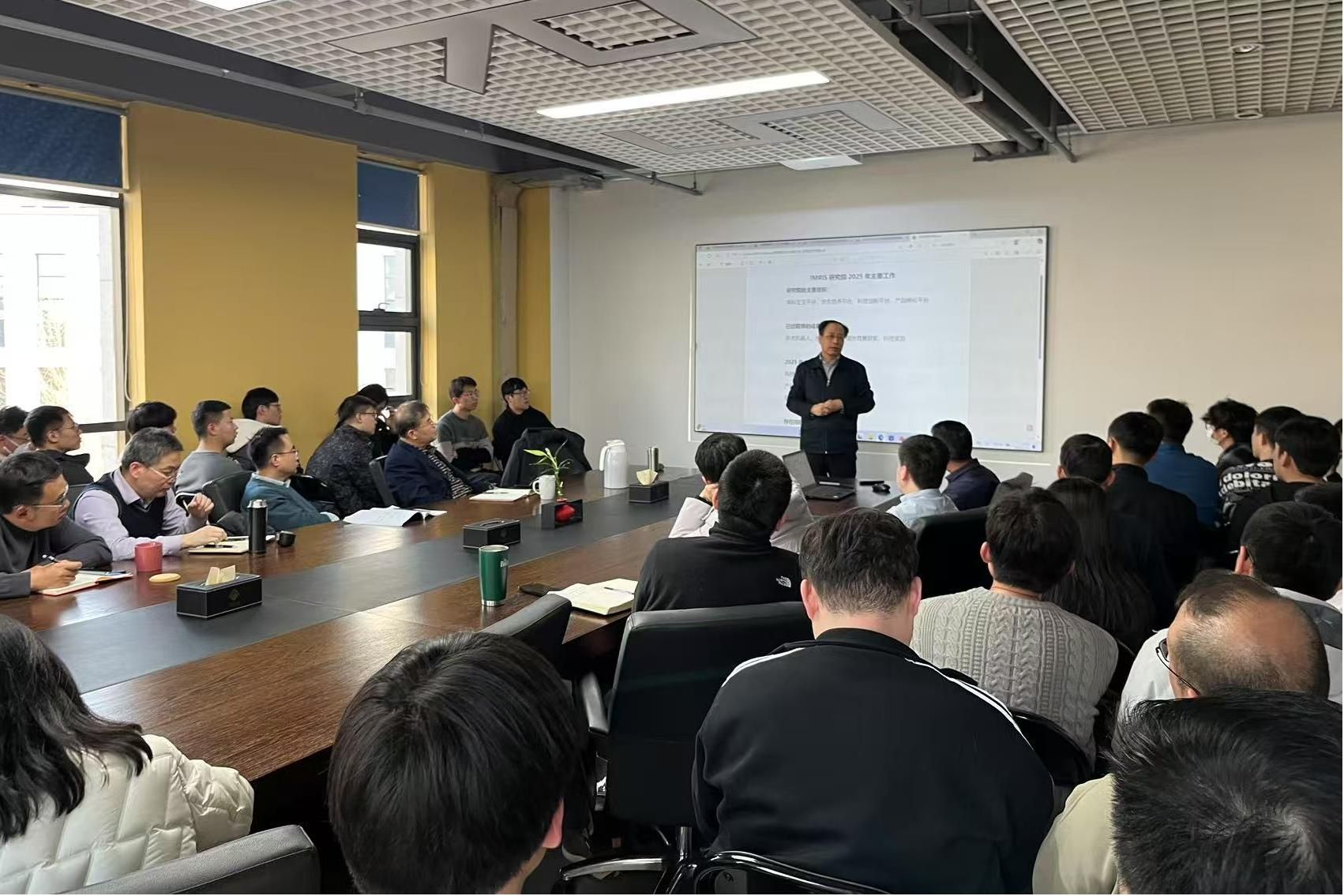 在讲话中,院士还强调了以科技创新引领产业创新的重要性,同时也指出研究院目前存在的问题和面临的挑战,对2025年研究院工作提出了建议和要求。一是高质量发展,要聚焦关键领域重点方向,持续推动研究院高水平研究成果的创造,实现跨学科技术的交叉融合创新。二是高效率落实,坚持挂图作战、打表推进,以改革实效激发全员内在活力,形成全院上下主动思考、实干为要的良好氛围。三是高价值转化,通过产业化项目助推创新成果的快速转化运用,以项目高质量追求驱动研究院高质量发展。希望大家深刻领会会议精神,站在新的发展节点,回顾以往、审视自我、展望未来,期待2025年全院各项工作取得新进展新成效,实现科研创新能力、产业化水平及人才培养质量齐升,努力将研究院打造成为集学科交叉、人才培养、科技创新和产品孵化的高水平平台。