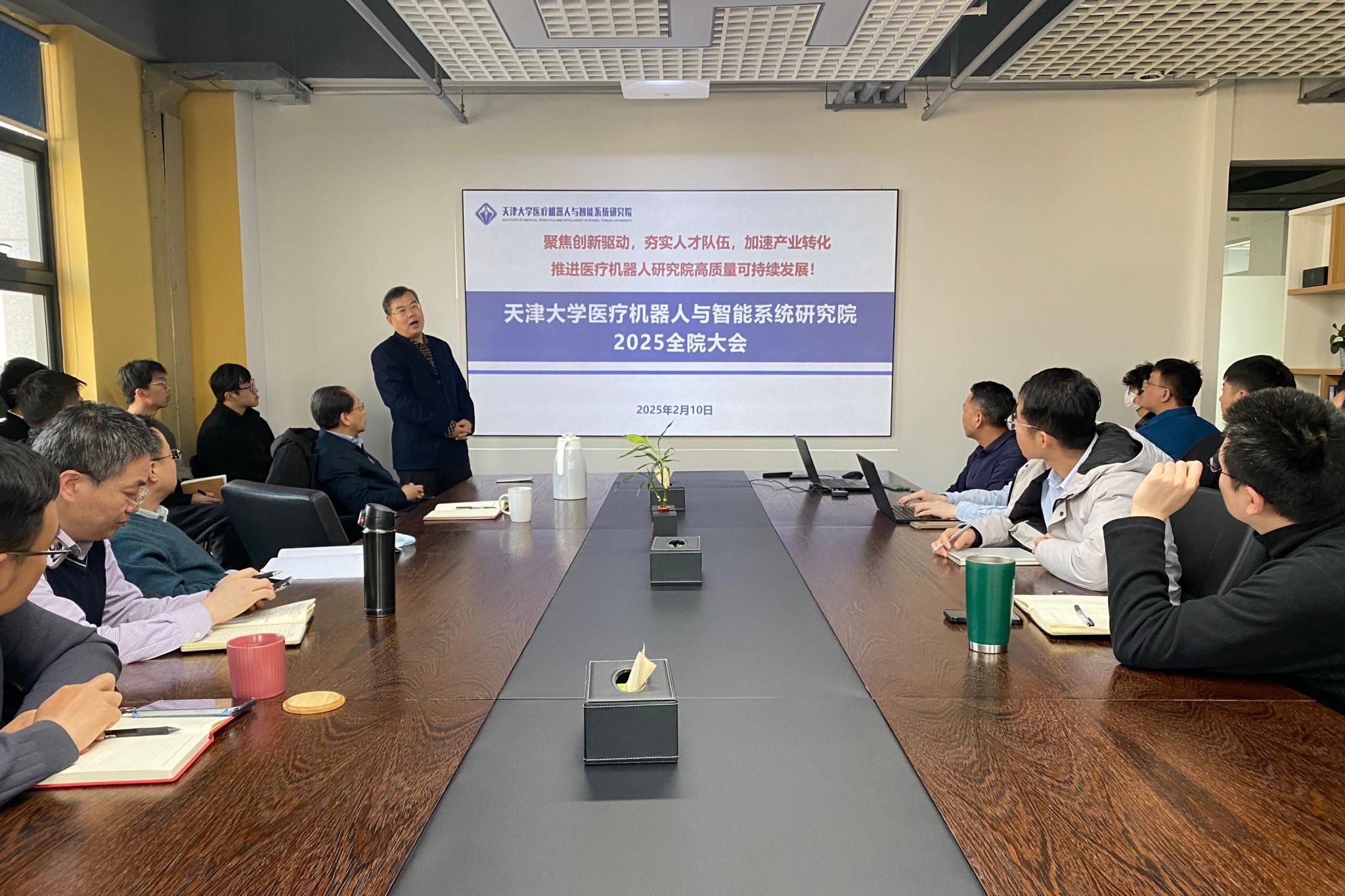 2月10日,我院召开了以“聚焦创新驱动,夯实人才队伍,加速产业转化,引领医疗机器人研究院高质量可持续发展”为主题的2025全院大会,研究院首席科学家、中国工程院院士王树新,院长孙月海,副院长李进华、左亮及包括导师团在内的全体师生员工参加会议,会议由孙月海主持。