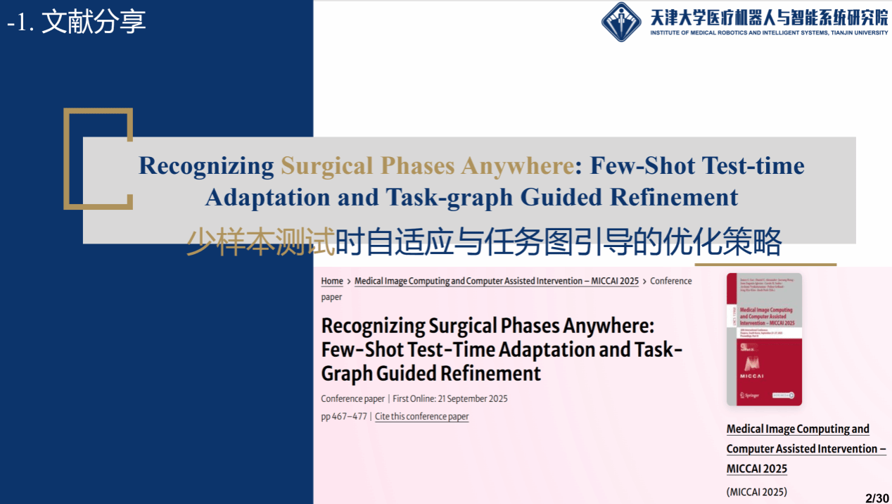 [1] Yuan, K. et al. (2026). Recognizing Surgical Phases Anywhere: Few-Shot Test-Time Adaptation and Task-Graph Guided Refinement. In: Gee, J.C., et al. Medical Image Computing and Computer Assisted Intervention – MICCAI 2025. MICCAI 2025. Lecture Notes in Computer Science, vol 15968. Springer, Cham.
