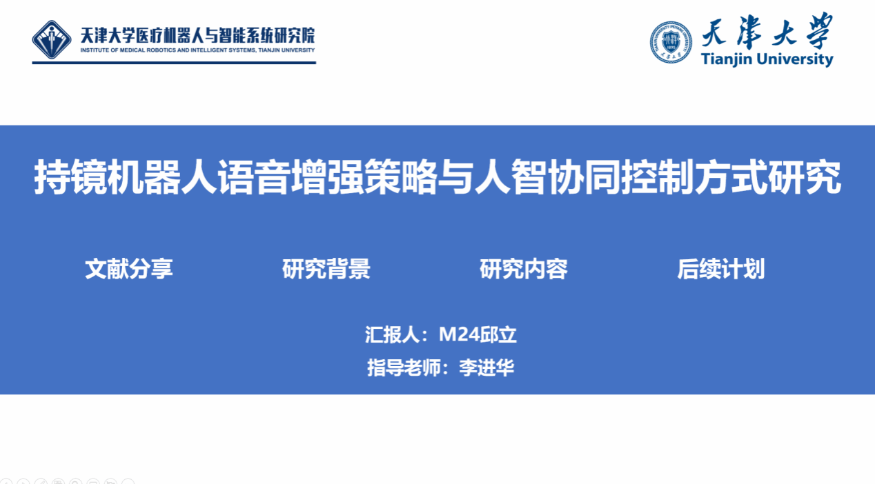 研究院2024级硕士研究生邱立进行了题为《持镜机器人语音增强策略与人智协同控制方式研究》的报告分享。