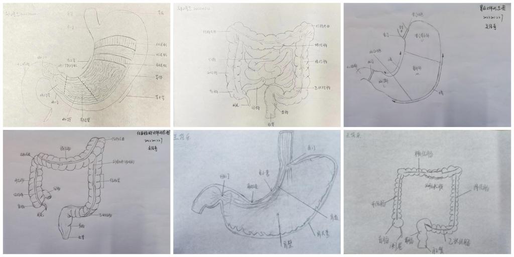 课堂上,王老师首先介绍了胃肠解剖结构和生理功能,带领大家绘制全胃肠道解剖示意图。随后,就腹腔镜器械及其使用方法进行全面讲解,使大家对外科医生基本的手术操作有了初步的理解。